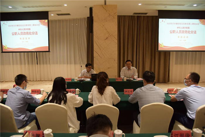公司党委副书记洪东明在开班式上讲话,强调了培训的目的意义及要求。公司纪委书记林镇国结合典型案例为学员做《中华人民共和国公职人员政务处分法》专题讲座,加强党员干部对《政务处分法》的学习与运用,提高履职能力和水平。