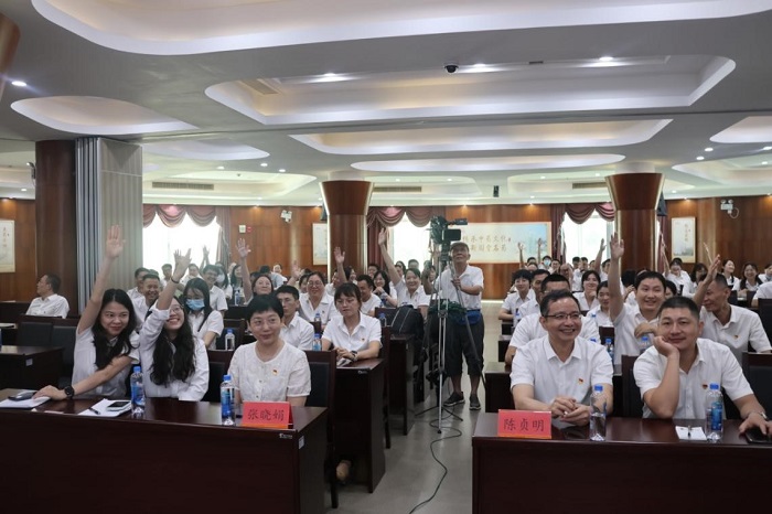 为庆祝中国共产党成立104周年,扎实推动深入贯彻中央八项规定精神学习教育走深走实,推进党史学习教育常态化长效化。7月15日下午,由药业公司党委主办、化妆品公司党总支承办的“庆七一 学党史 守规矩”党史和中央八项规定精神知识竞赛圆满收官,药业党委所属党支部党员代表共计100多人现场参加活动。
