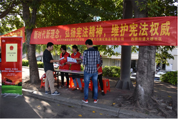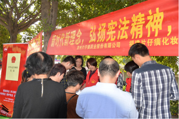124日是全国第五个国家宪法日,漳州片仔癀药业股份有限公司联合福建片仔癀化妆品有限公司、大桥社区及共建单位走上街头,开展“新时代新理念,弘扬宪法精神,维护宪法权威”志愿宣传活动。