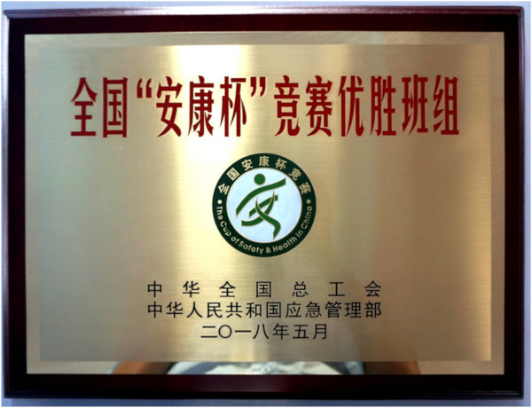 第二车间提三班组荣获2016-2017年度全国“安康杯”竞赛优胜班组称号