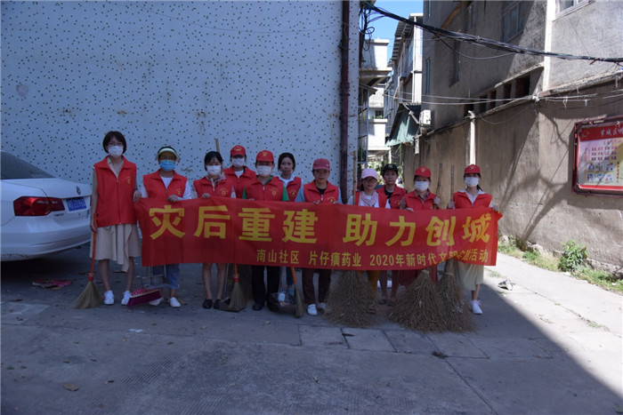 “那我们差不多开始行动吧。”南山社区书记的话音刚落,志愿者们便拿起扫帚,热火朝天地开启了今天的“灾后重建 助力创城”活动。此次志愿活动是对台风过后一片狼藉的南山路28号宿舍进行清扫。由于这里不属于环卫的工作范围,台风过后,各种倾倒的树枝、落叶遍地都是,影响了居民们的正常生活。为全力以赴做好台风灾后恢复,力争把台风带来的影响降到最低,积极推进漳州全国文明城市创建,解决居民们的烦恼,片仔癀药业和南山社区共同合作,组织志愿者撸起袖子,拿起工具,扫去脏污,留下卫生和文明。天气炎热,也阻挡不了志愿者们的干事热情。在众人的共同努力下,曾经垃圾成堆、味道难闻的社区焕然一新,恰逢微风徐来,卷携着空气中的草木香,为满头大汗的志愿者送来清凉。