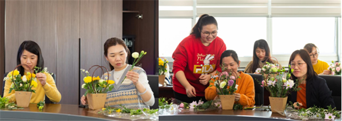 为关爱女性员工,丰富文化生活,展现片仔癀公司广大女职工爱岗敬业、积极向上的良好精神风貌,片仔癀药业公司在3月7日“女神节”组织开展“巾帼心向党,奋斗绽芳华”——庆“三八”女神节插花送花活动。