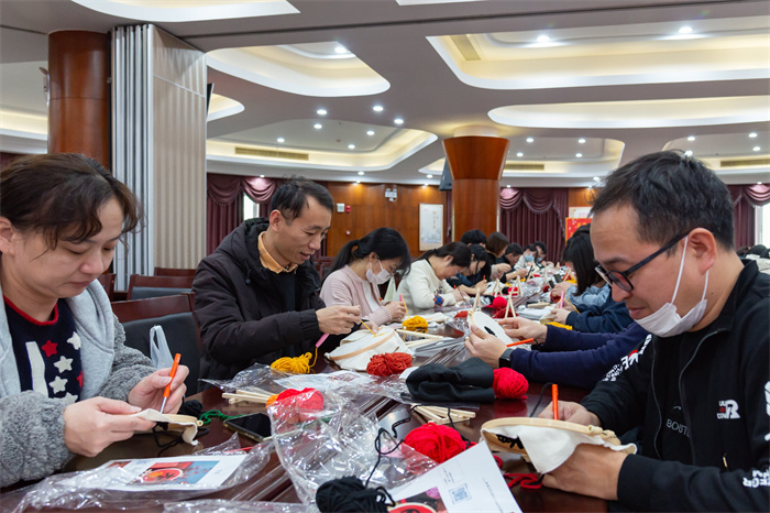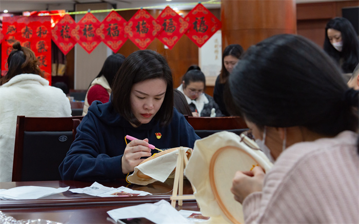 本次新春活动还组织职工沉浸式体验“戳戳绣DIY制作”,“戳戳绣”也称为墩绣,是利用空心针在织物上以线圈创造图案的一种织法。此次手工戳戳绣选取了“福”、“龙”和“大吉”作为题材,寓意大家在龙年大吉大利、福气满满。大家在老师的讲解下,纷纷将自己对新年的祝福和美好愿望绣入其中,为新的一年绣出福气,绣下期许。