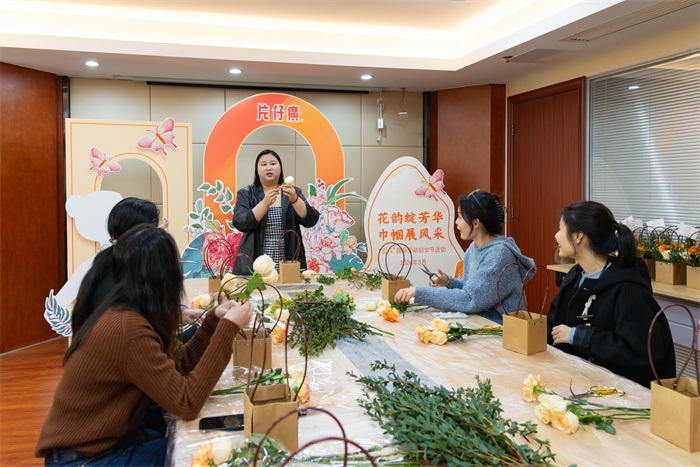 本次活动特邀专业的花艺老师为大家进行讲解和指导。活动伊始,老师向大家详细讲解了插花的基本技巧、花材的选择与搭配,并向大家介绍各种花卉所蕴含的花语和祝福。在老师的讲解下,大家纷纷参与到插花创作中,对鲜花进行筛选、修剪,通过自己的创意将一支支鲜花变成一篮篮艺术品,近距离体验插花艺术的魅力。同时,公司党委还为每位女性干部职工准备了一份花礼,表达公司对女性职工的关怀与祝福。