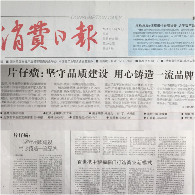 《消费日报》《片仔癀:坚守品质建设 用心铸造一流品牌》