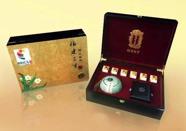作为古代丝绸之路的见证者和中药对外交流的一张重要名片,片仔癀药业倾心打造《福建三宝》礼盒,内含寿山石、片仔癀和乌龙茶,集实用性、观赏性、收藏性及艺术性于一体,完美演绎了中华传统文化与现代艺术结合的美学感受,既彰显了国与国之间的重视和礼遇,也符合由中国制造走向中国创造的创新之路,展现了福建风采和海丝文化, 对“和平、发展、合作、共赢”的金砖精神作了生动诠释。