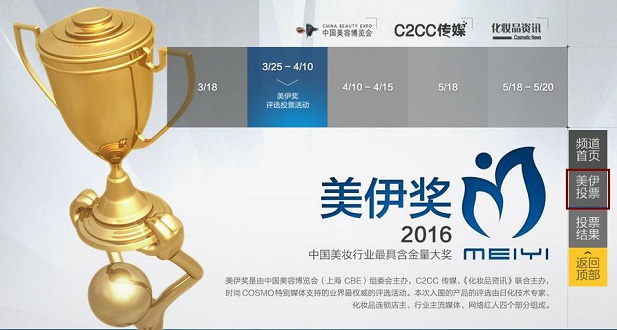 1. 打开http://meiyi.c2cc.cn/2016/vote.aspx#content(或用微信扫描以下二维码)。