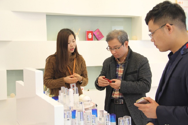 陈总编一行参观了片仔癀化妆品公司新厂区展厅及产品