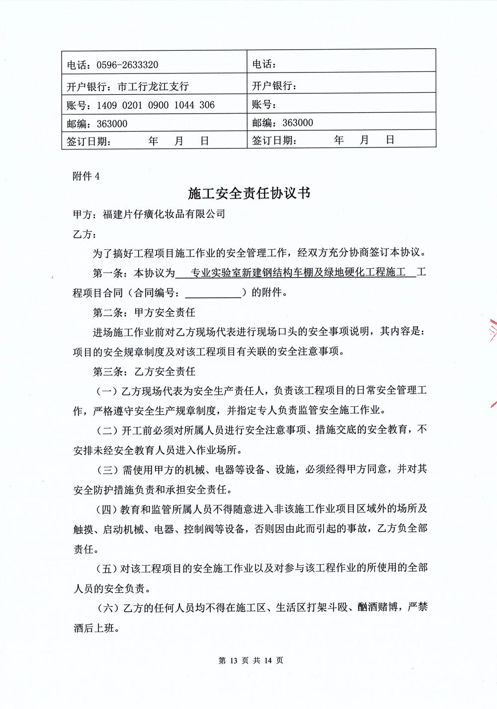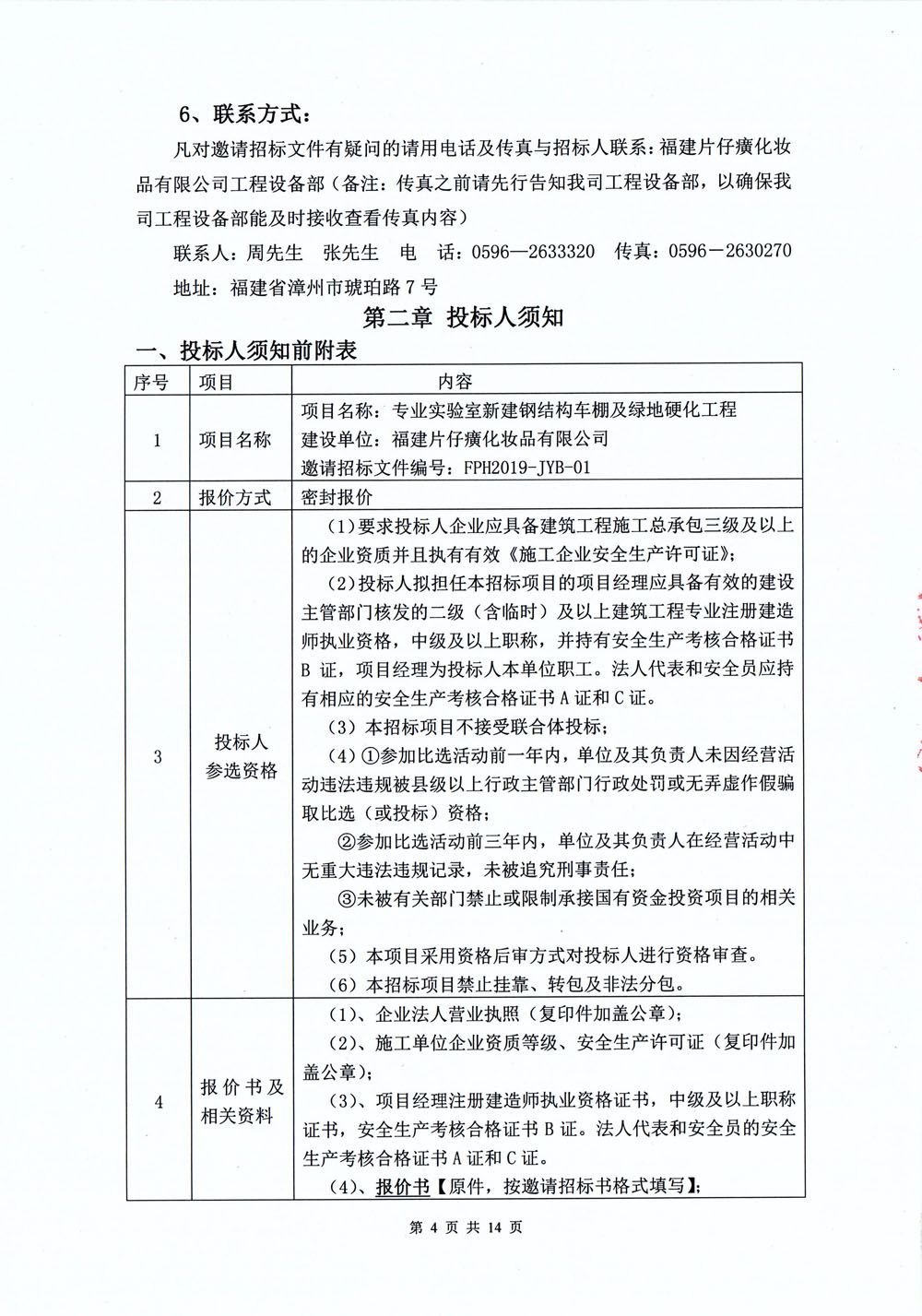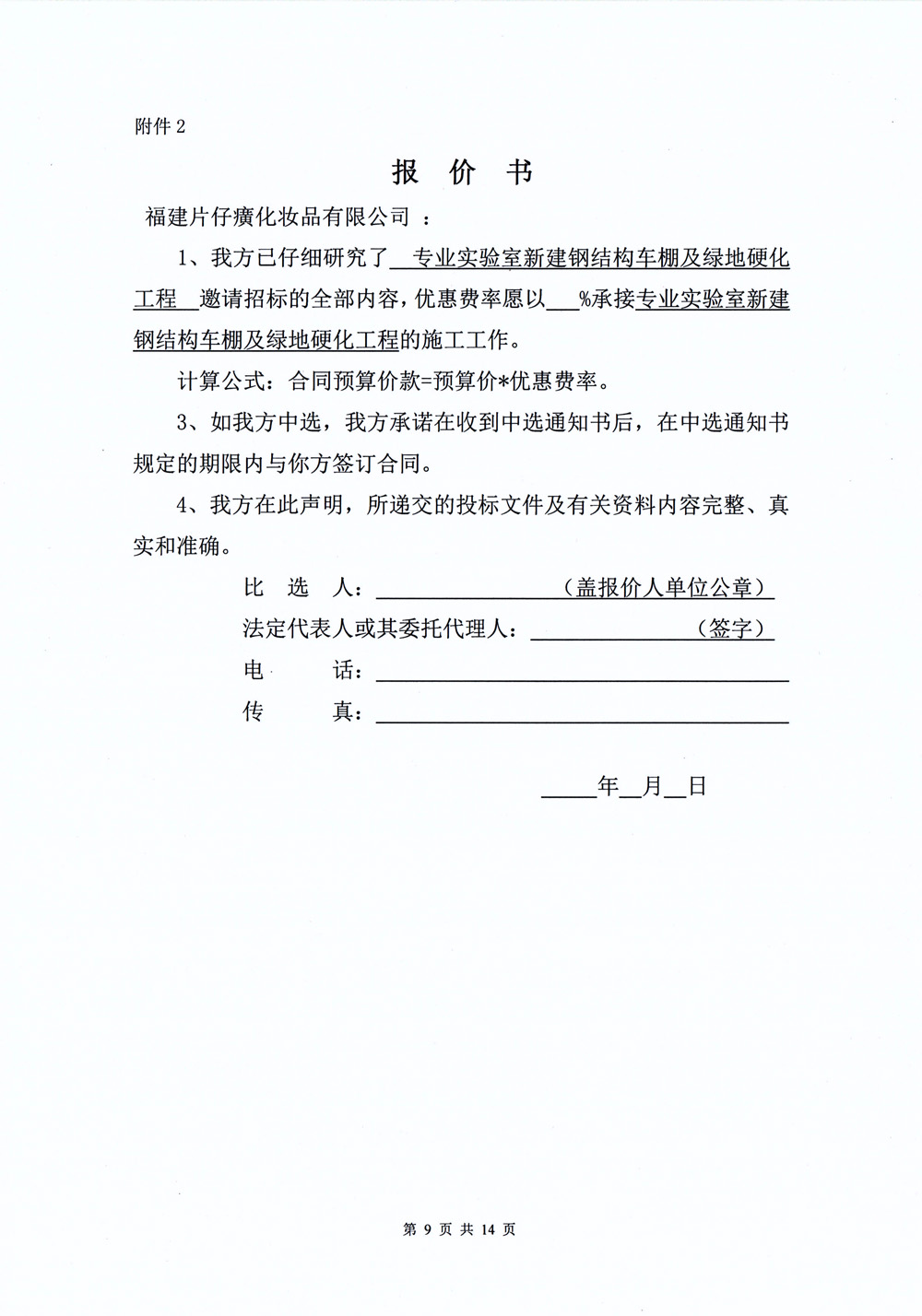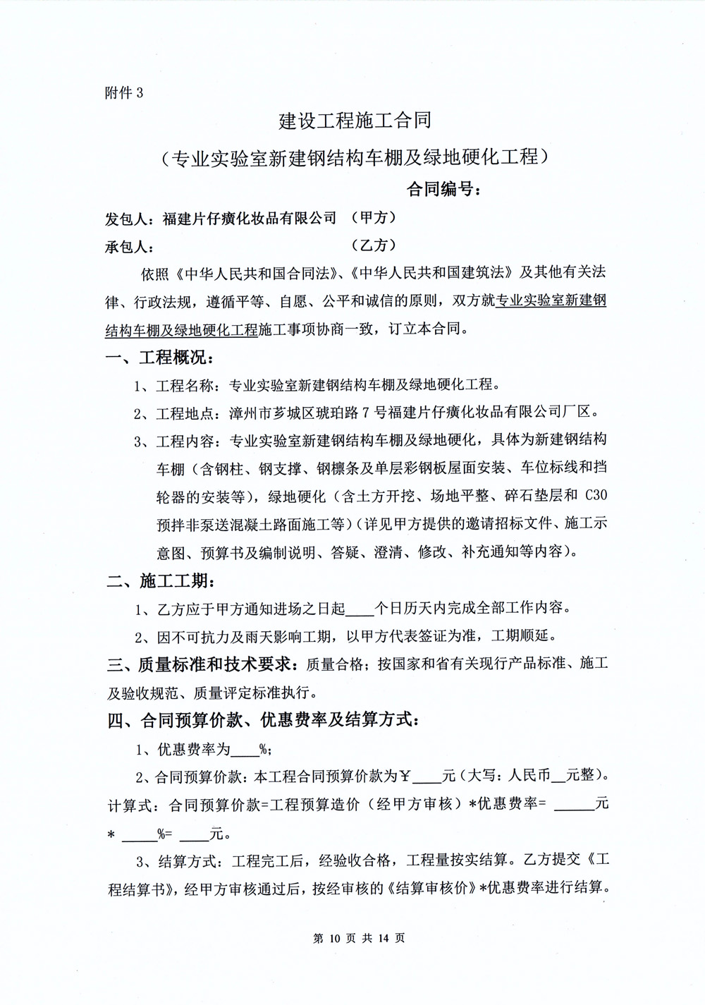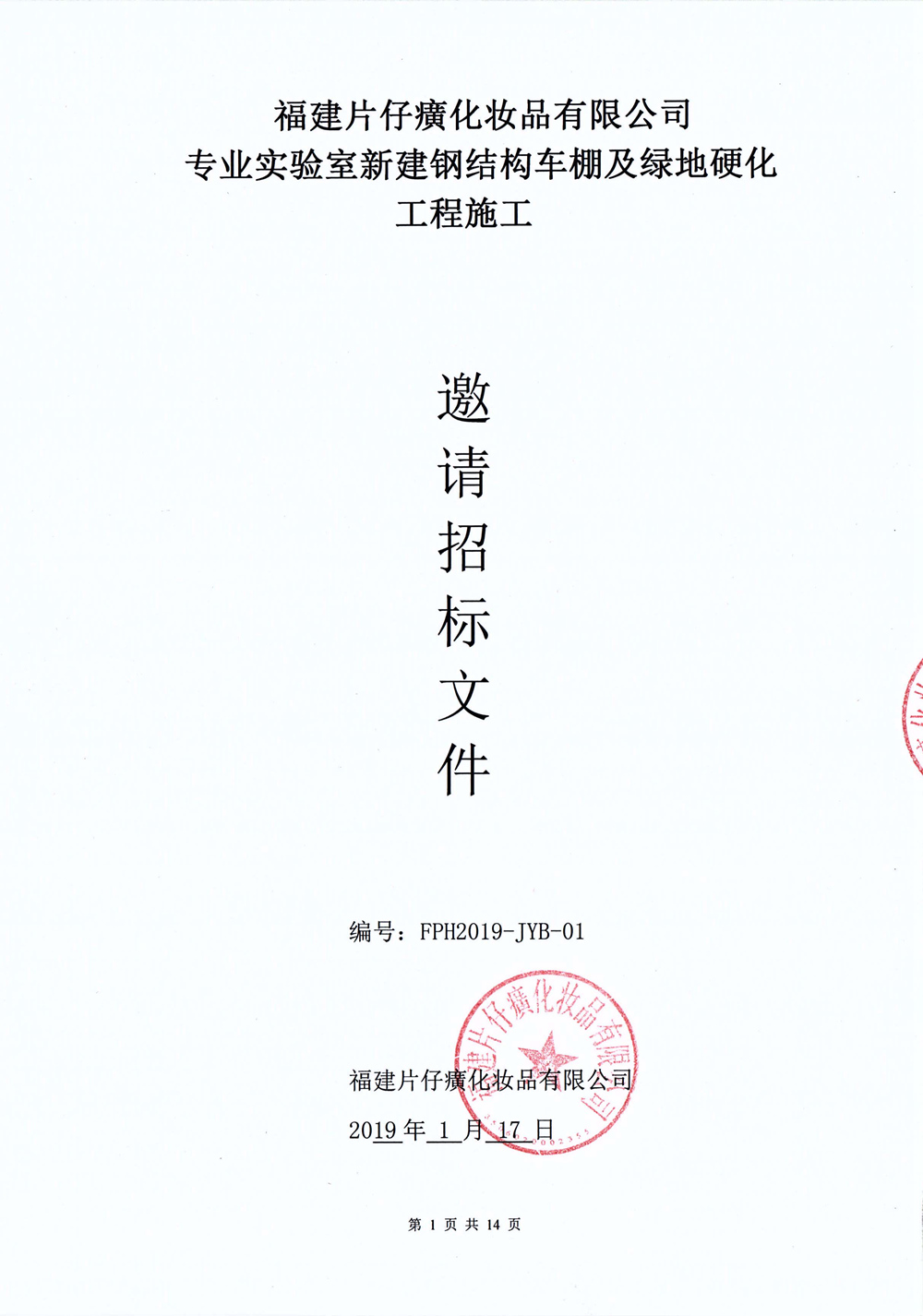 福建片仔癀化妆品有限公司专业实验室新建钢结构车棚及绿地硬化工程施工邀请招标文件
