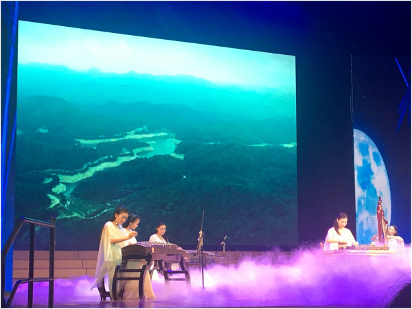 晚会在欢快的开场舞《盛世欢歌》中拉开了序幕。紧接着的潮音锣鼓《龙腾虎跃》,气势磅礴、动人心魄;少儿舞蹈《我爱北京天安门》,充满青春的朝气,抒发了对祖国的热爱之情;歌伴舞《西湖·美从天上来》,展示了漳州田园都市、生态之城的风韵和魅力;情景歌舞《月港故事》,讲述了月港这一明代著名外贸通商口岸的前世今生;龙人古琴《龙津琴韵》、茶艺民乐《奇兰飘香》让观众领略到漳州琴、茶文化的听觉与视觉的盛宴;男声小组唱《闽南人》,唱出了闽南儿女爱国爱乡、敢拼会赢的精神风貌;龙人古琴《龙津琴韵》、新编竹马戏《唐二带妻逛漳浦》、南音表演《百鸟归巢》、器乐舞蹈《高山畲水一家亲》等节目,精彩地呈现了漳州浓郁独特的地方舞台艺术;整场晚会充满了浓厚的漳州味和闽南风,赢得现场观众的阵阵掌声。最后,全场起立齐声《歌唱祖国》,将晚会气氛推向高潮。