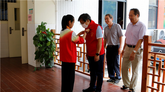在阳光学校,少先队员代表们为来宾们佩戴鲜艳的红领巾。为欢迎慰问组的到来,孩子们更准备了一台精彩纷呈的欢迎舞会,他们乐观开朗的笑容感染了在座的每一个人。慰问组也为改善孩子们的办学条件带去5万元善款。